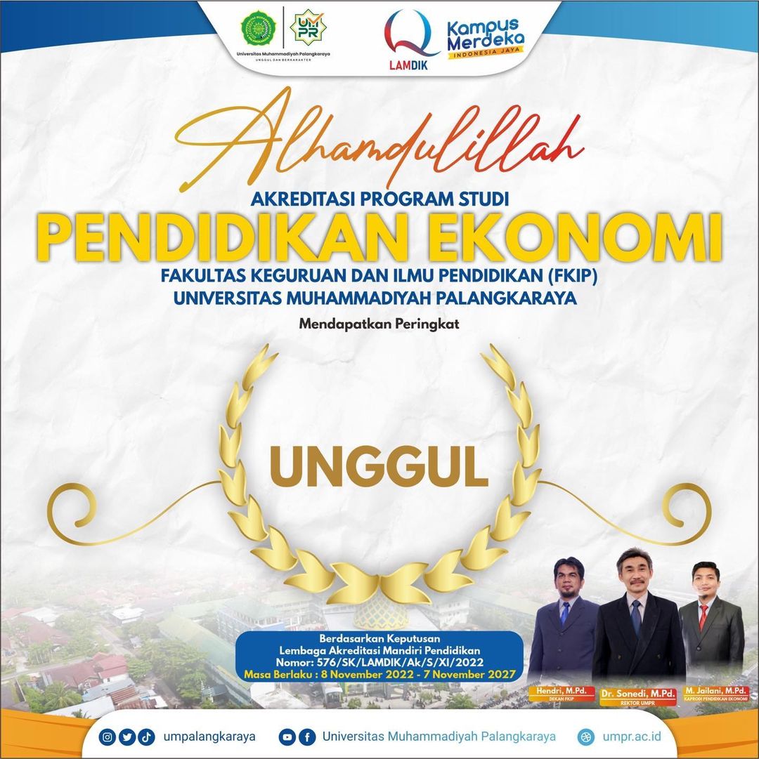 Palangka Raya (04/11): Setelah melalui proses visitasi asesmen lapangan secara daring melalui Lembaga Akreditasi Mandiri Kependidikan (LAM-DIK), Program studi Pendidikan Ekonomi Universitas Palangkaraya meraih status atau peringkat “UNGGUL” saat ini. Proses pencapaian hasil yang memuaskan ini sesuai dengan hasil kerja keras seluruh pihak yang terlibat, baik tim akreditasi maupun dukungan seluruh seluruh civitas akademika Universitas...Read More